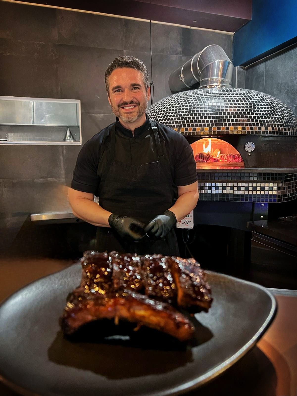 During service the oven is super hot and acts like a broiler that sizzles and chars carrots and fennel in seconds. After service the temperature goes down and I can roast and braise my pork and beef overnight. The next morning there is enough retained heat in my oven to create a perfect environment for smoking the ribs, pork belly, chicken wings and prime rib. Even our desserts are cooked in the wood-fired oven.